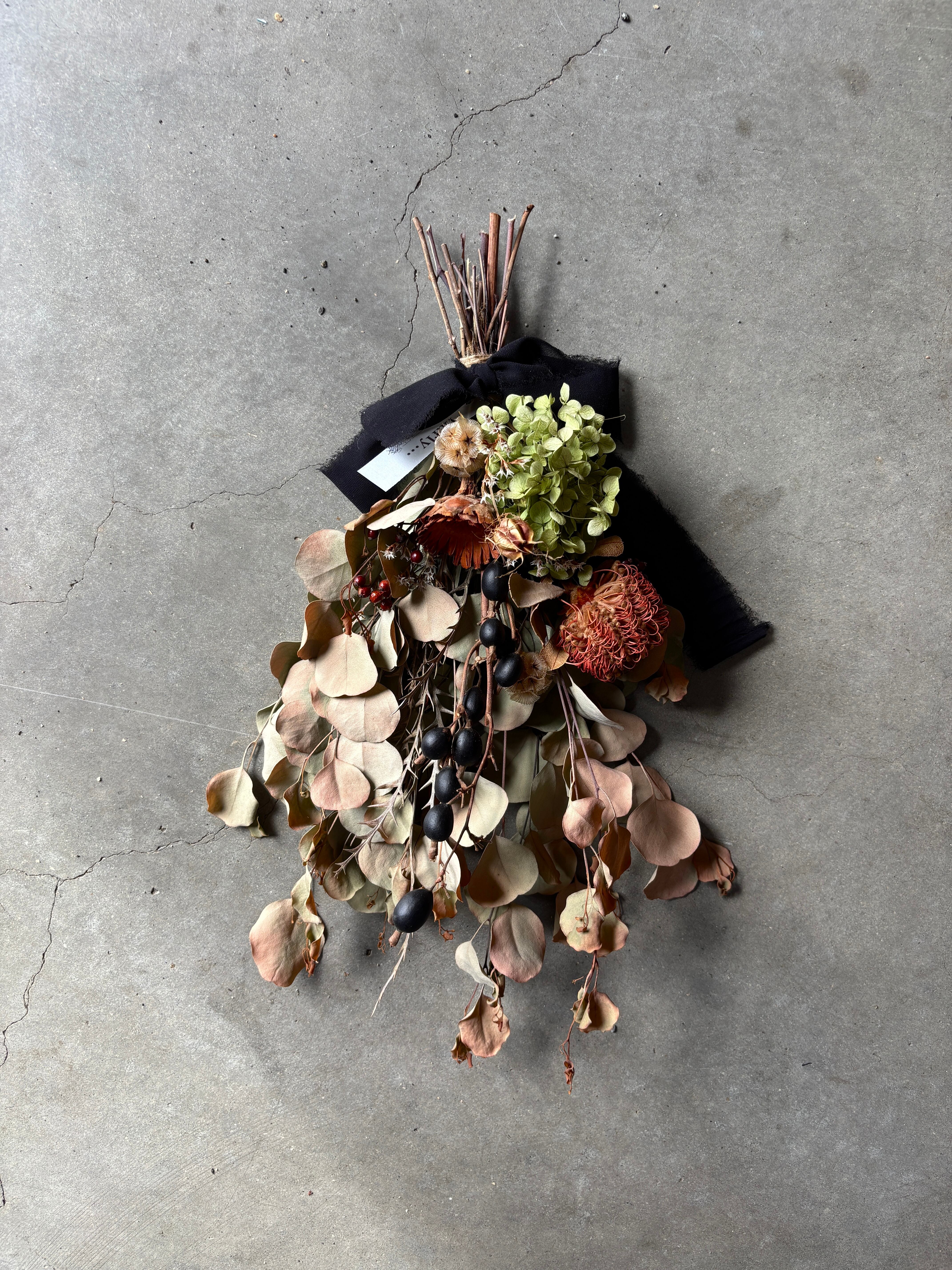 ※【お値下げ商品】送料無料¥3800→¥2500 スモーキースワッグ - ユーカリと秋色ドライフラワーのアレンジメント
