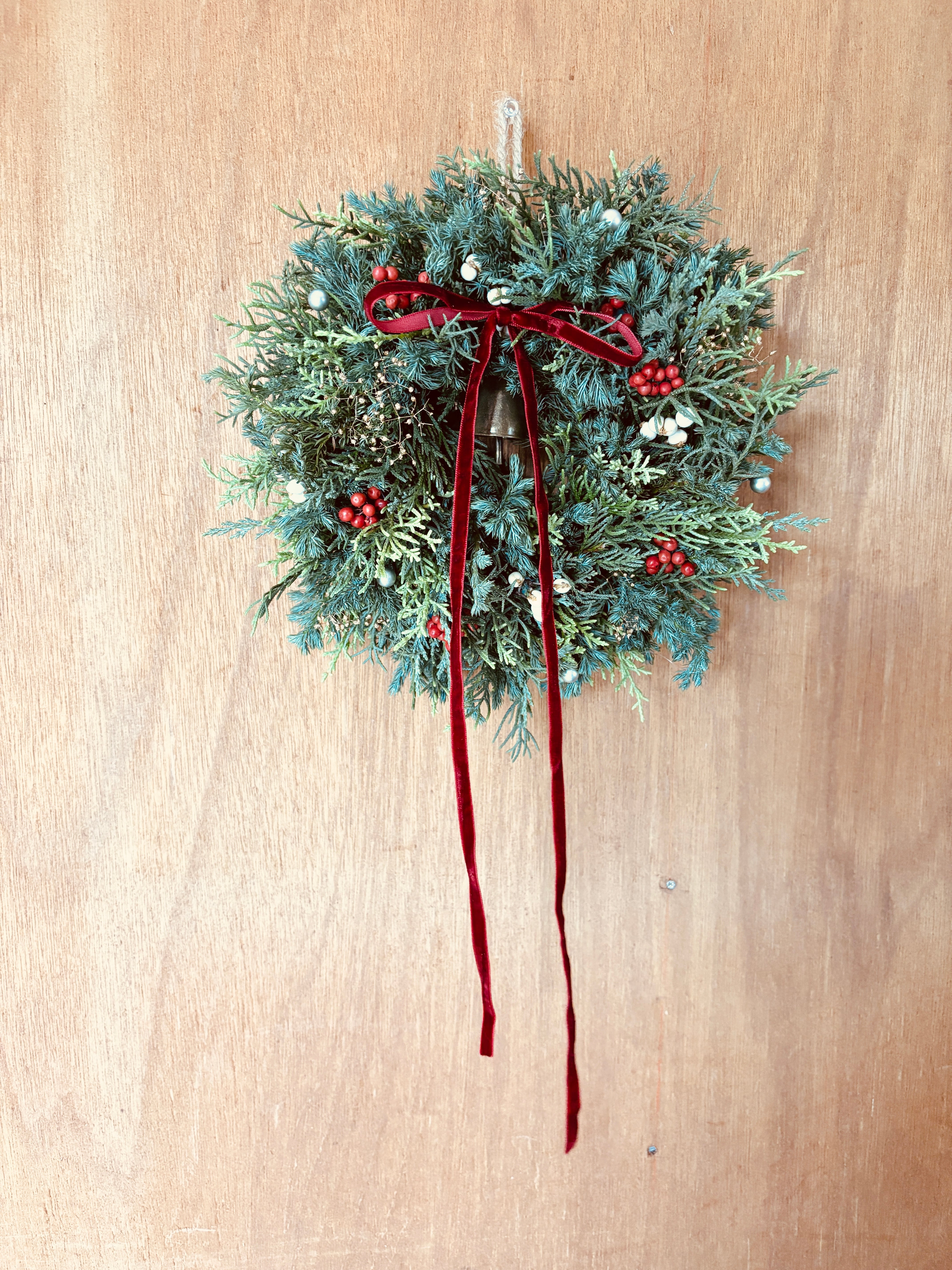 【Xmas限定】ふわもこグリーンリース*赤リボン×木の実*クリスマスインテリア