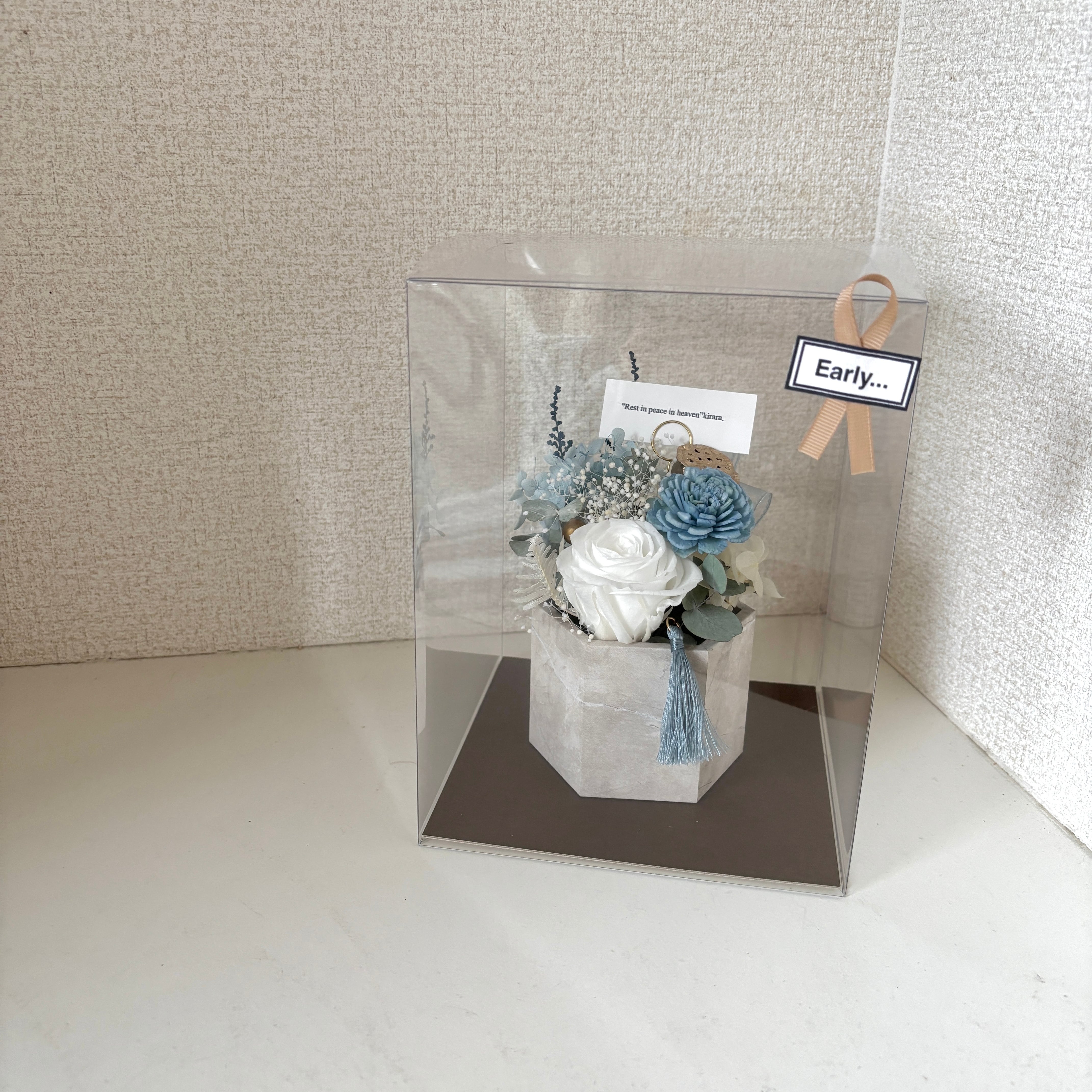 【お供えフラワー】ペットのお悔やみアレンジメント*犬・猫*クリアケース対応