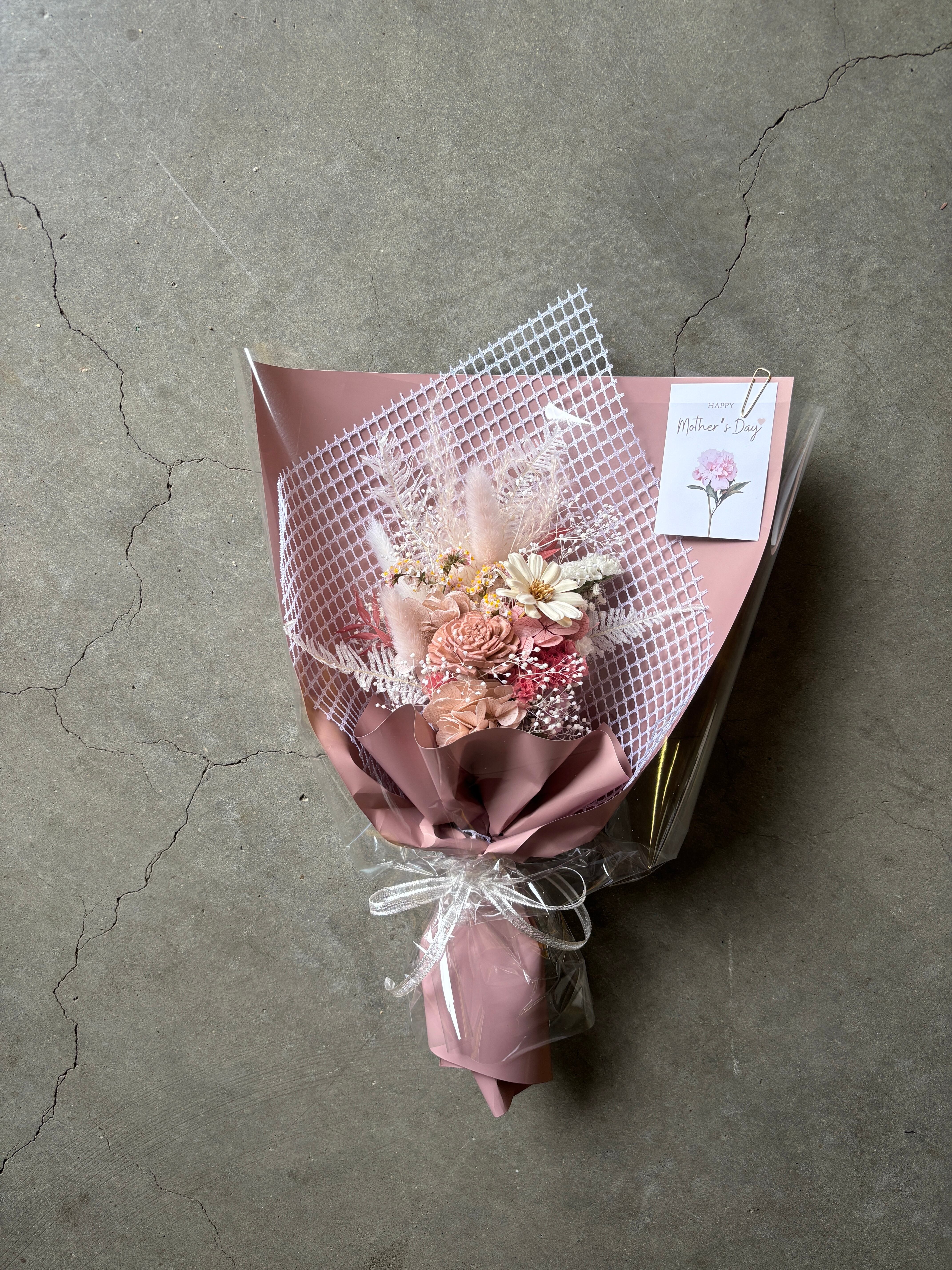 母の日 ドライフラワー花束 ピンクベージュ ネットラッピング ナチュラル ギフト