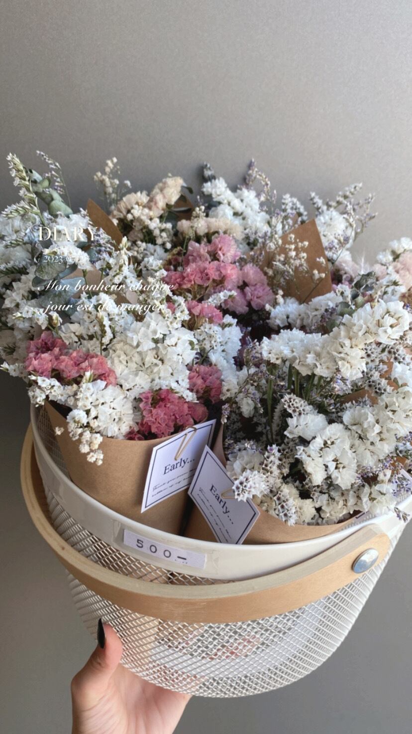 スターチスのドライフラワー花束。